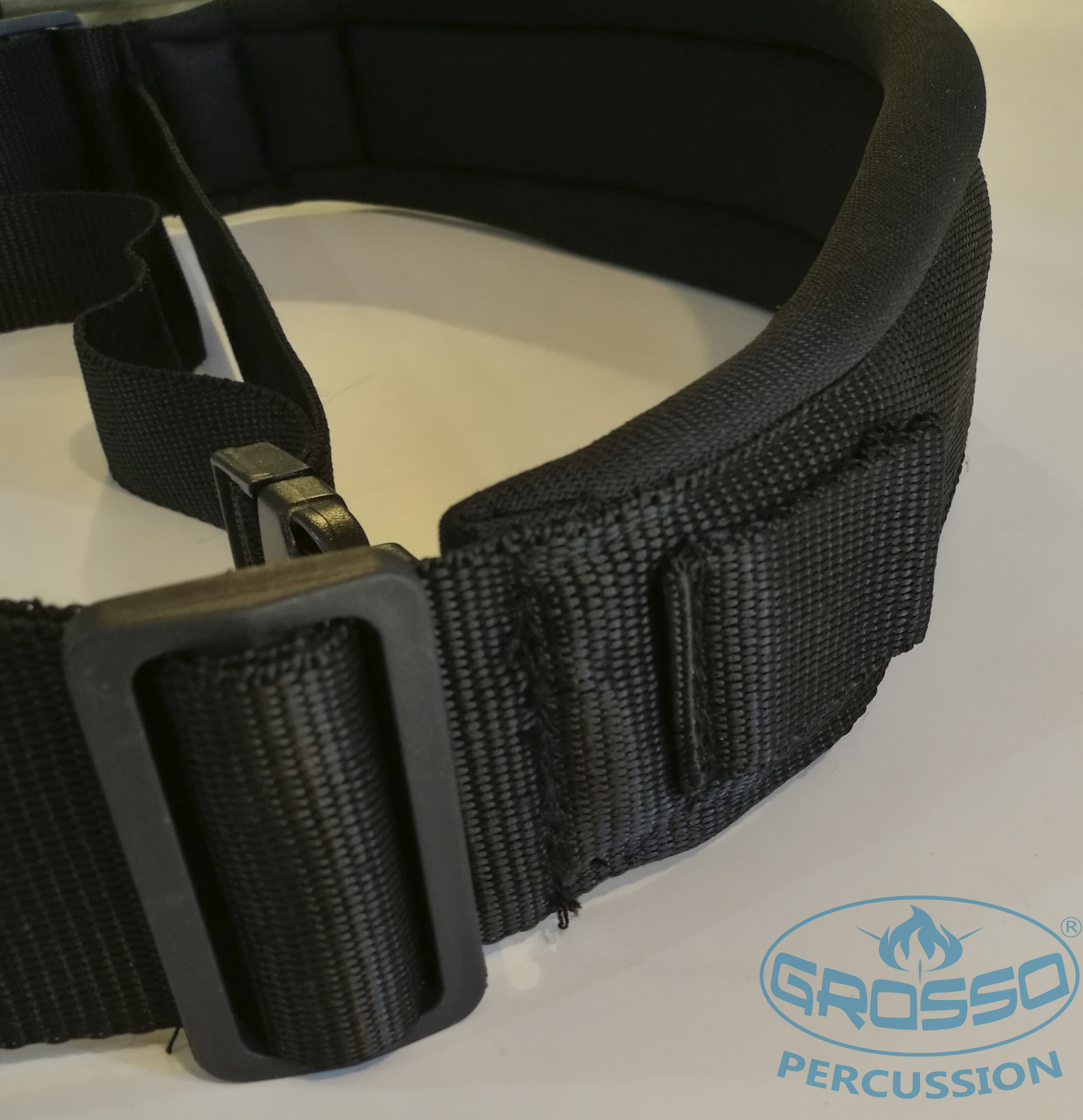 Correas para surdos y repeniques. Correas batucada acolchada disponen de un cierre de seguridad y dos puntos para poder sujetar el instrumento de forma rápida. Fabricadas a mano en España con materiales de calidad.